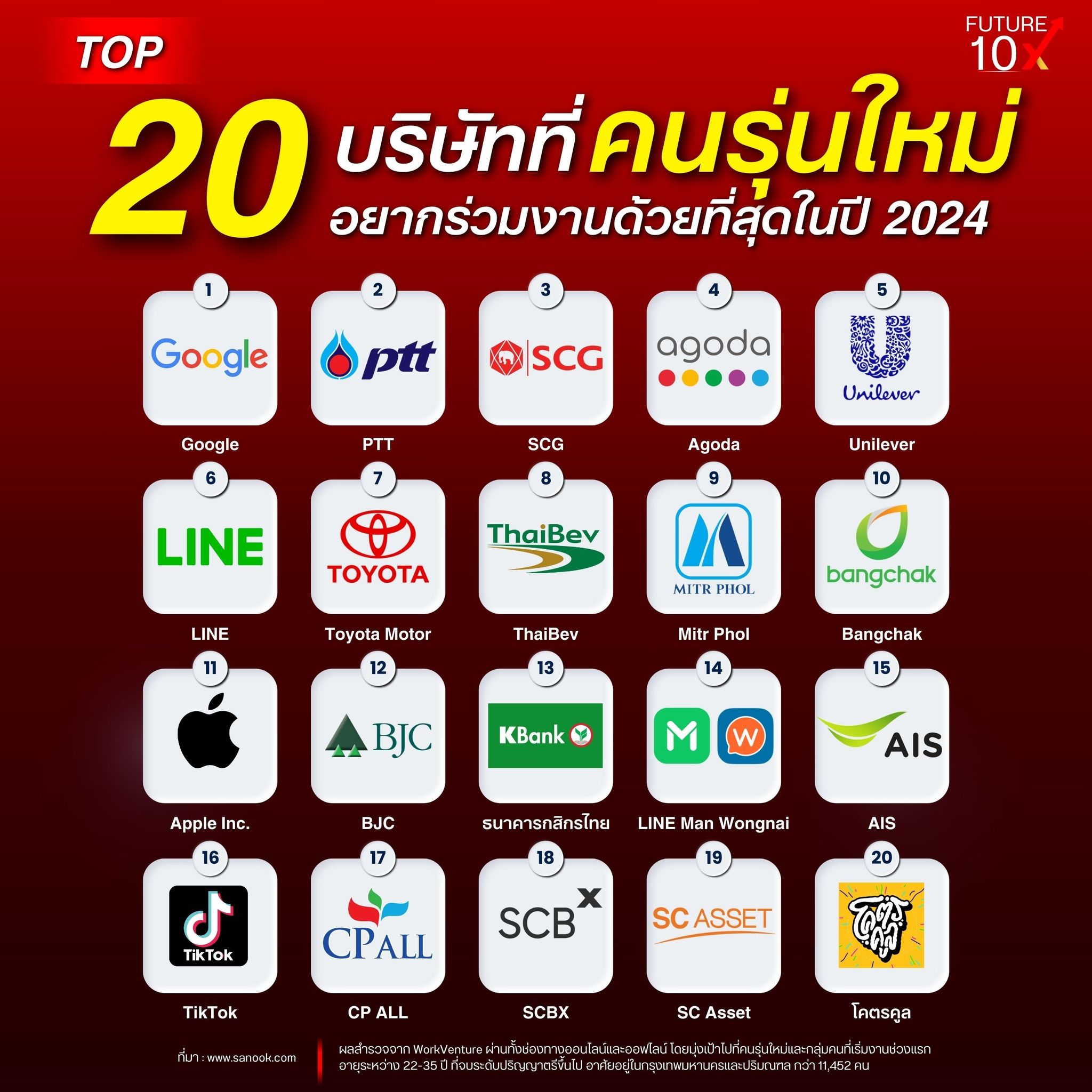 TOP 20 บริษัทที่คนรุ่นใหม่อยากร่วมงานมากที่สุดในปี 2024
