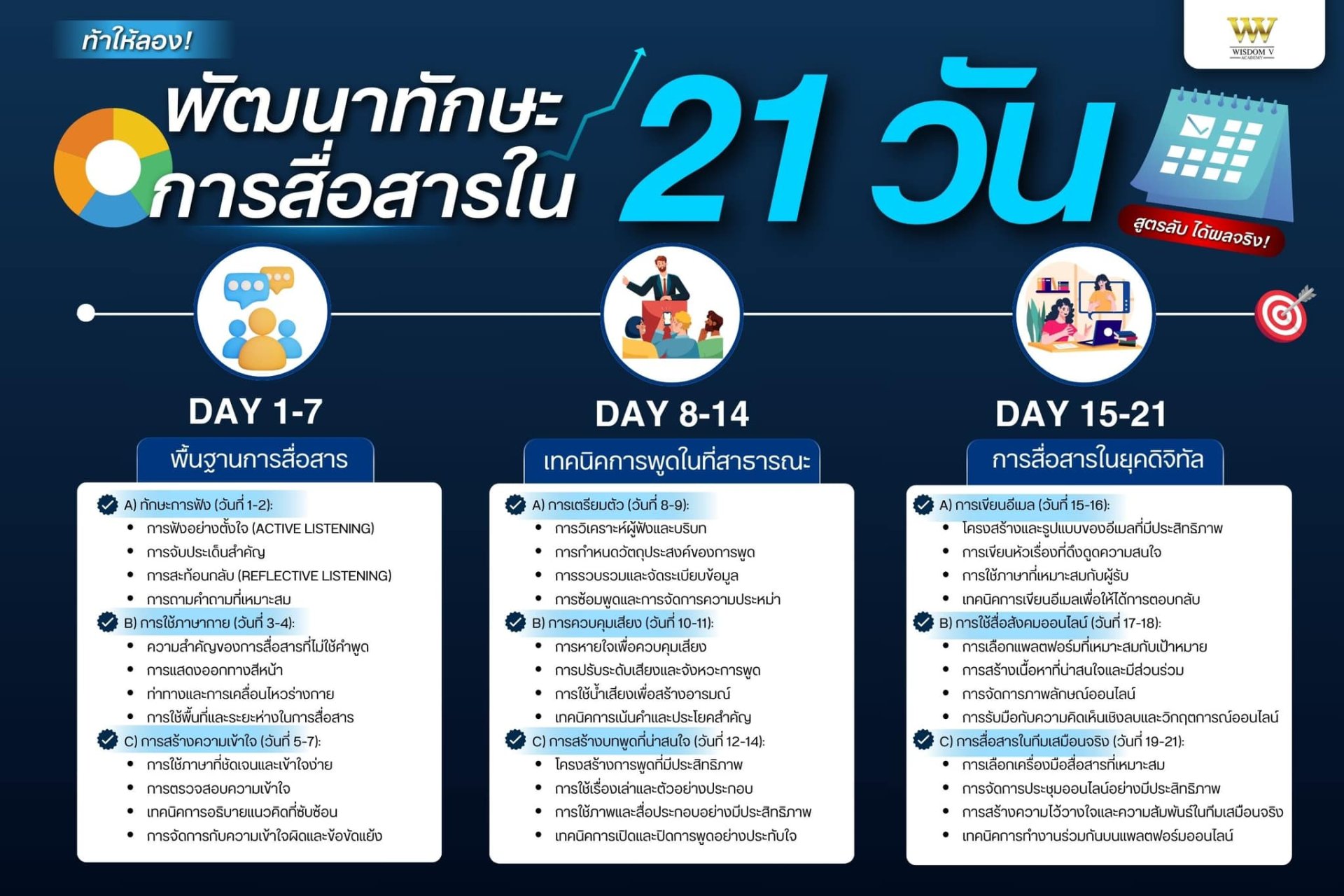 ทุกวันคือโอกาสในการพัฒนาทักษะการสื่อสาร เริ่มเลยวันนี้ แล้วมาดูกันว่า 21 วันนี้จะเปลี่ยนคุณไปขนาดไหน!