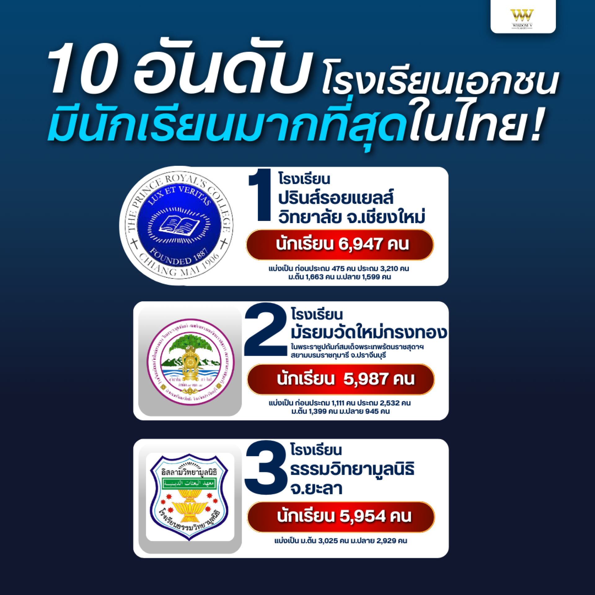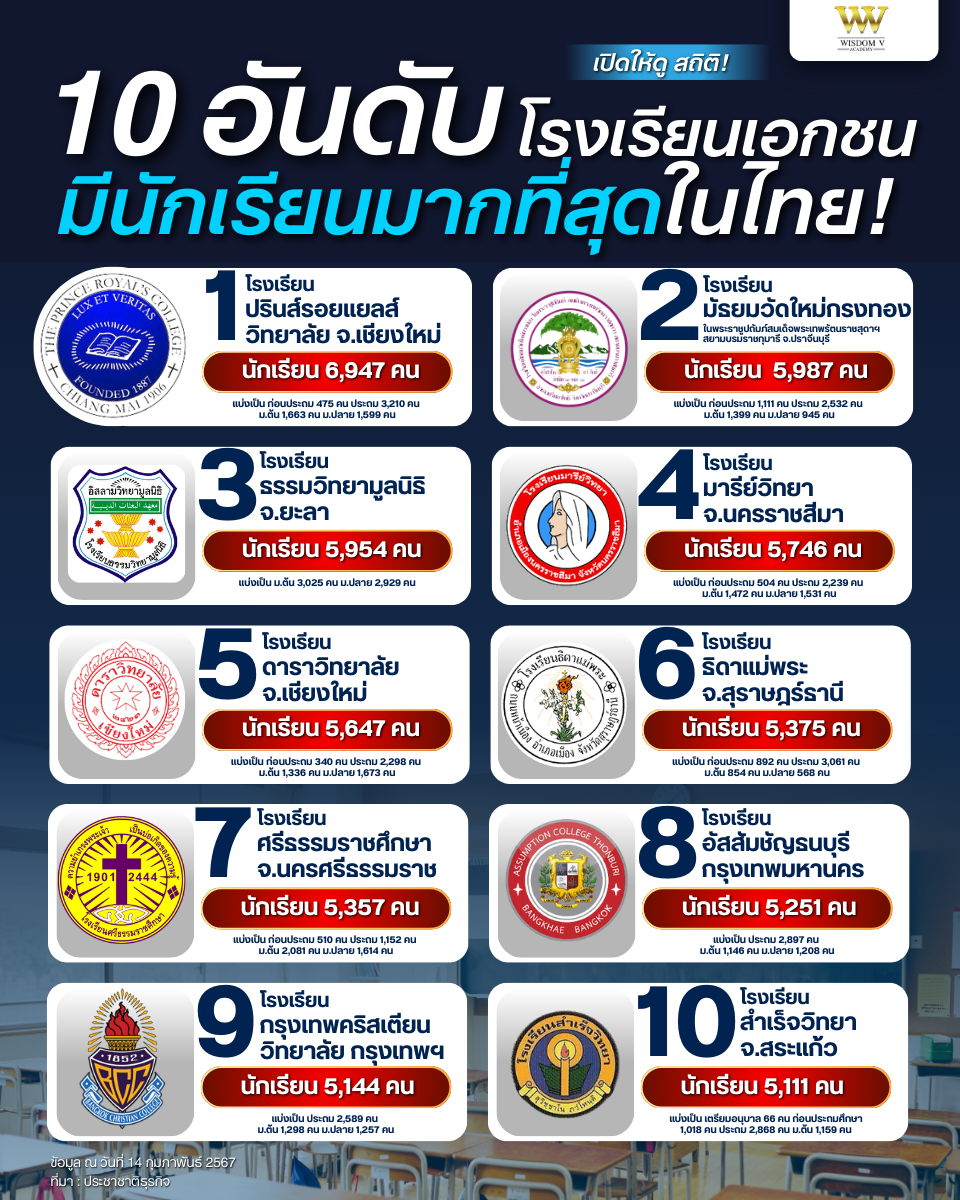 10 อันดับโรงเรียนเอกชนที่มีนักเรียนมากที่สุดในไทย